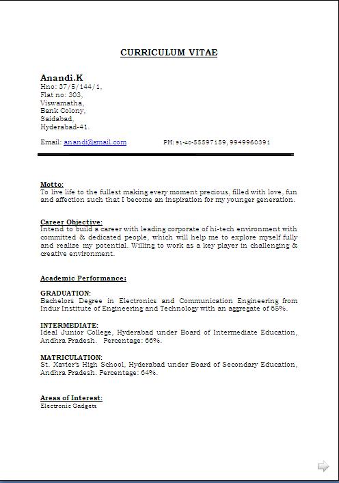 Sample Template Example of Beautiful Excellent Professional Curriculum Vitae / Resume / CV Format with Career Objective, Job Profile & Work Experience for Freshers & Experienced in Word / Doc / Pdf Free Download
